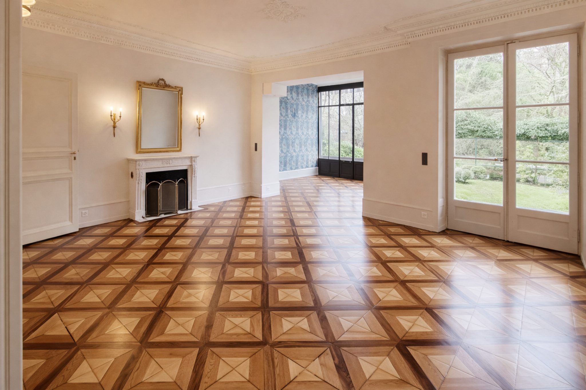 Installation de revêtement en bois pour un intérieur chaleureux et élégant.